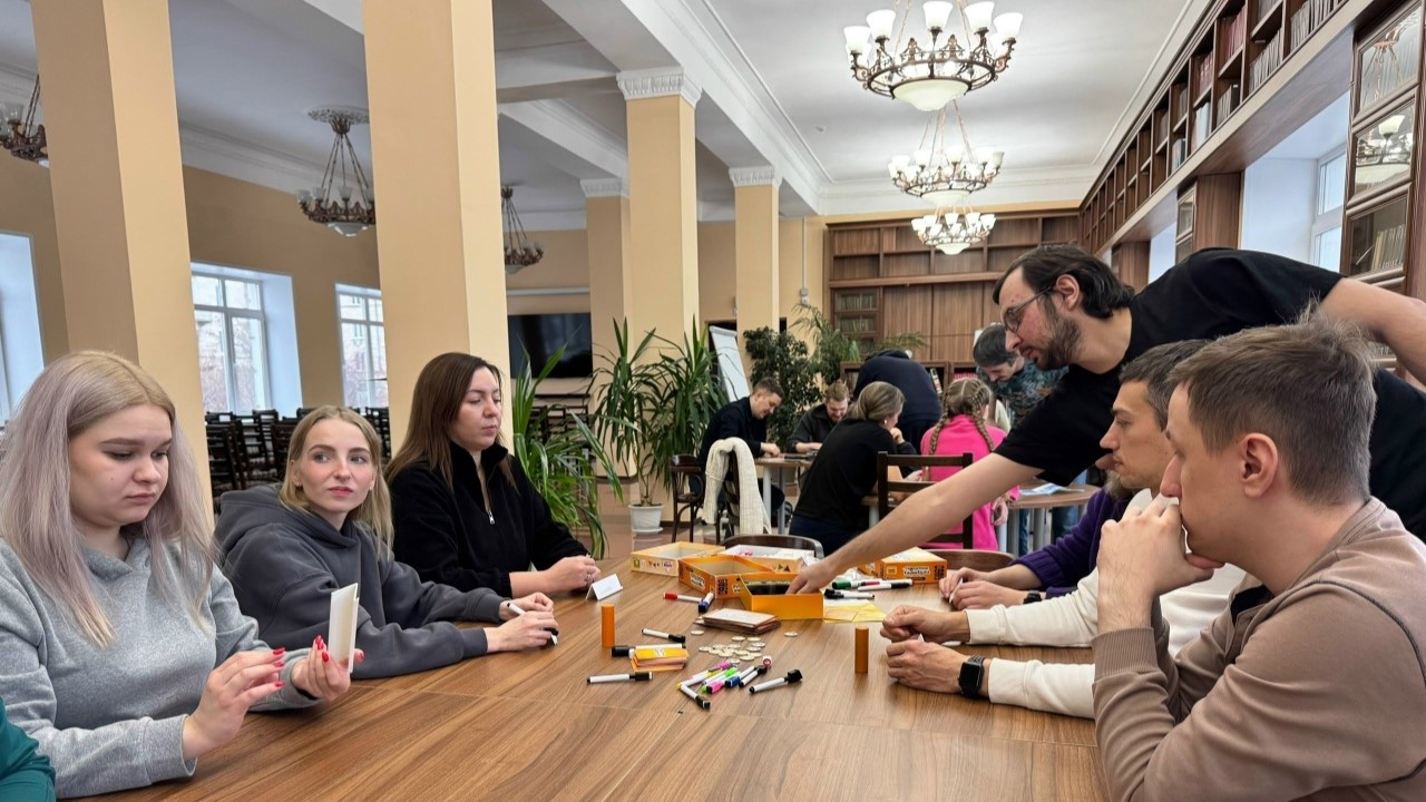 В субботу 22 ноября в Центральной городской библиотеке прошла обучающая игротека для молодых работников Нижнетагильского завода металлических конструкций от сообщества любителей настольных игр «СЛОН».